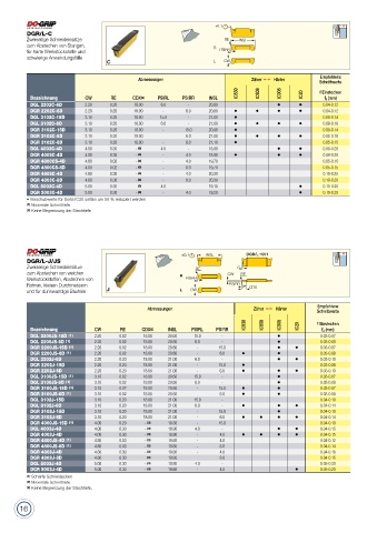 • Vorschubwerte für Sorte IC20 sollten um 50 % reduziert werden