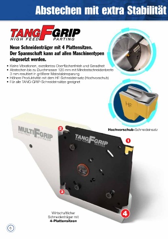 • Höhere Produktivität mit dem HF-Schneideinsatz (Hochvorschub)