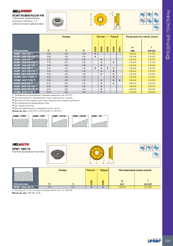 Размеры Прочный 1 Твёрдый Рекомендованные режимы резания Фрезерные пластины