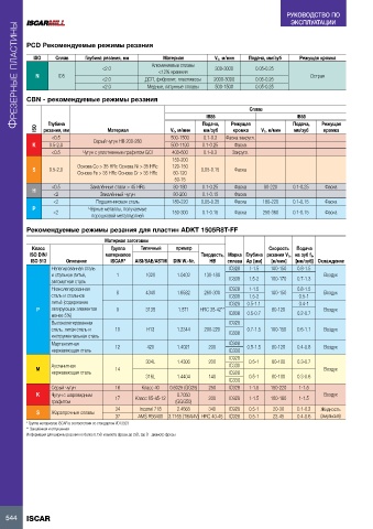 ISO 513 Описание ISCAR* AISI/SAE/ASTM DIN W.-Nr. HB сплава Ap [мм] [м/мин] [мм/зуб] Охлаждение