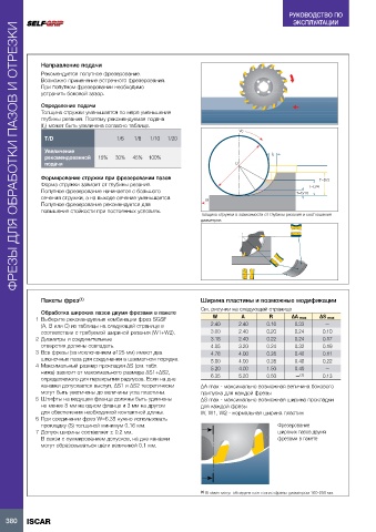 1  Выберите рекомендуемые комбинации фрез SGSF          W        A        R      ∆A max   ∆S max