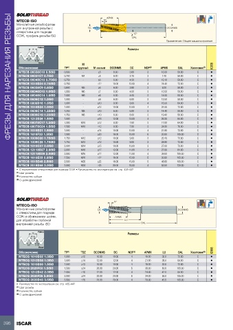 внутренней резьбы ISO                                          OAL