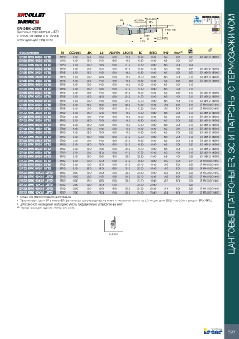 • При установке цанги ER в патрон ER фактическая выступающая длина патрона становится короче на 2.0 мм для цанги ER20 и на 3.0 мм для цанг ER25/ER32