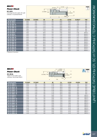 (1) Диапазон настройки ЦАНГОВЫЕ ПАТРОНЫ ER, SC И ПАТРОНЫ С ТЕРМОЗАЖИМОМ