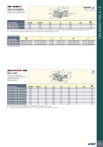 Обозначение           DCONMS     DCONWS        LPR         LB          BD         CDI (1)     kg           DIN 69893 HSK A / E