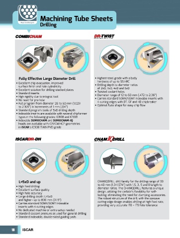 • Excellent chip evacuation, improved • Drilling depth to diameter ratios