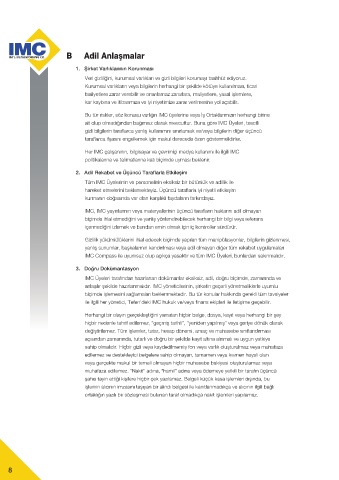 Tüm IMC Üyelerinin ve personelinin eksiksiz bir bütünlük ve adillik ile