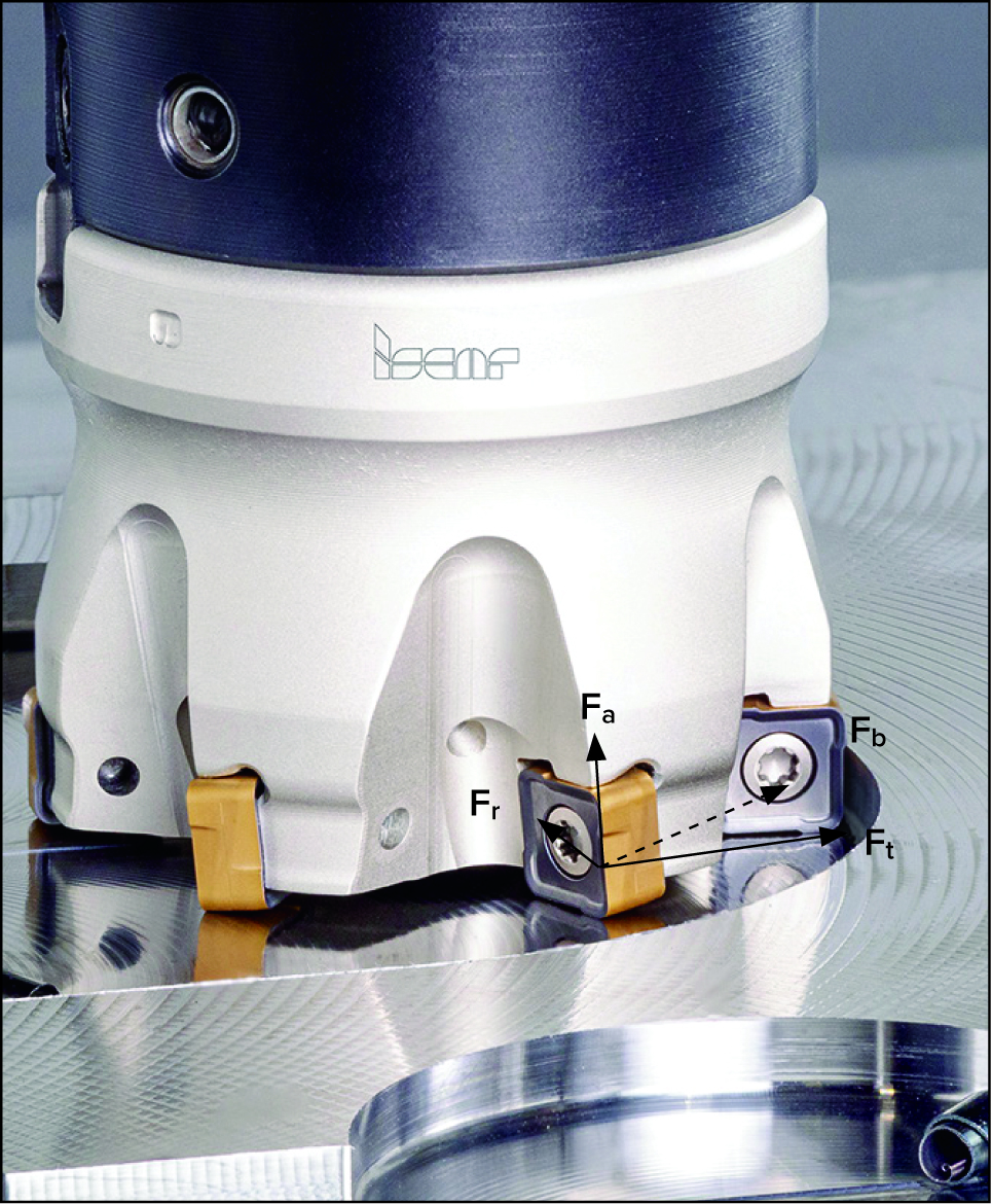 Depending on the type of machining, the effect of the forces on the tool is different, and the magnitudes of these forces are in varying ratios with respect to each other. In machining with rotational mode of primary motion, tangential force Ft is the largest when compared to the other components. This force is considered the main cutting force component and determines the torque and power consumption required for cutting action. In turning (Fig. 1), radial force Fr, which is directed radially from the axis of rotation of a workpiece, pushes a turning tool away from the workpiece. The resulting pushing effect may be a source of vibrations that affect machining accuracy and surface finish. Axial force Fa that is directed longitudinally, parallel to the axis of rotation, acts against feed motion. In terms of turning, this force is also referred to as “longitudinal” force.